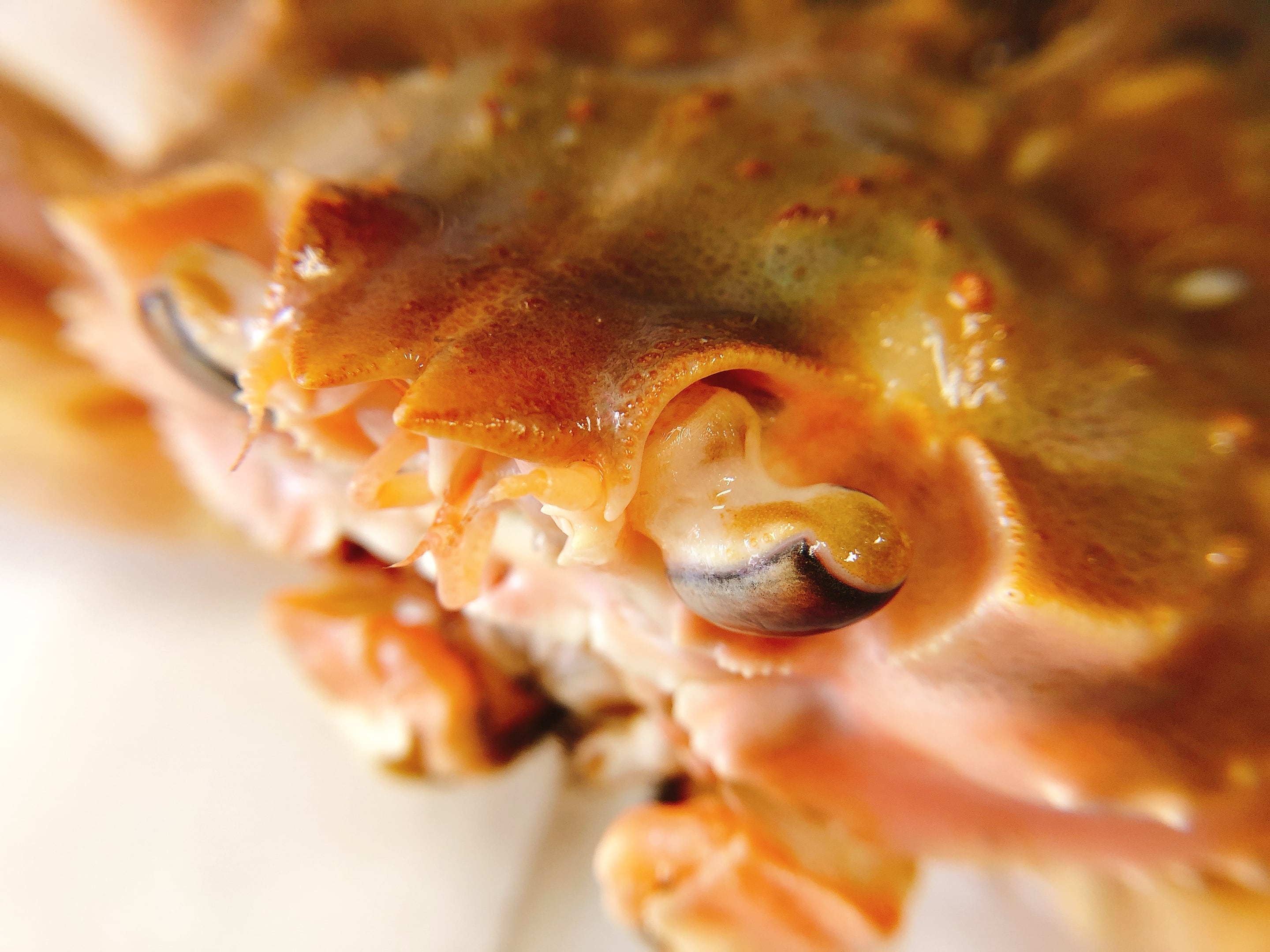 カニの甲羅についている黒い粒は、「カニビル」というヒルの一種です。カニは、脱皮をすると身が細り、痩せてしまうのですが、この黒い粒=脱皮から時間が経っていて実入りが良いと認識できるため、『美味しいカニの証拠』とも言われています。人体には無害なのでご安心を!